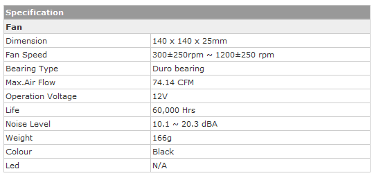 La ventola prodotta da Zaward ha una portata massima di 74.14 CFM, abbinata ad un regime di rotazione molto contentuo, infatti il range operativo 300±250rpm ~ 1200±250 rpm garantisce un livello di rumore davvero minimo. Il Valore dichiarato dal costruttore è di ben 10.1 ~ 20.3 dBA, che come si può intuire garantisce un funzionamento davvero silenzioso. Potete osservare la curva dell'emissione sonora vs Velocità e la curva Velocità vs Duty Cycle.